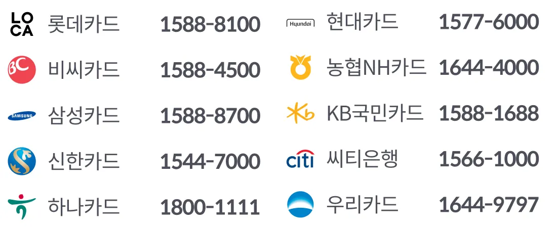 매입보류문의, 취소환불 일정 등 궁금한사항은 아래 카드사 고객센터로 문의하여 확인 할 수 있습니다.