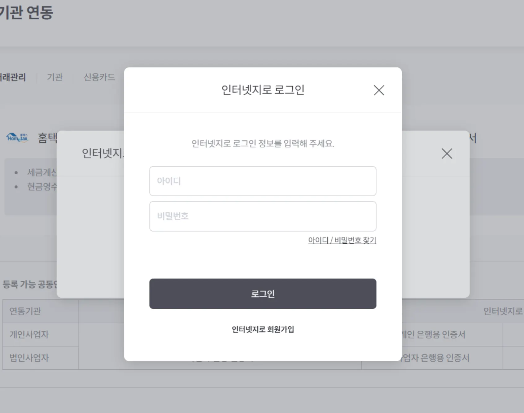 3-1. 인터넷지로 로그인 팝업 발생 시 (개인사업자 해당)