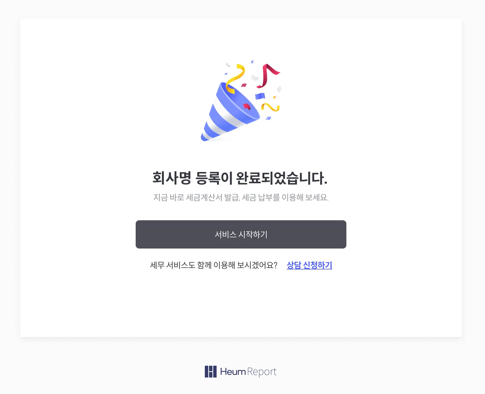 등록 완료 확인 후 서비스 시작하기 버튼을 선택합니다.