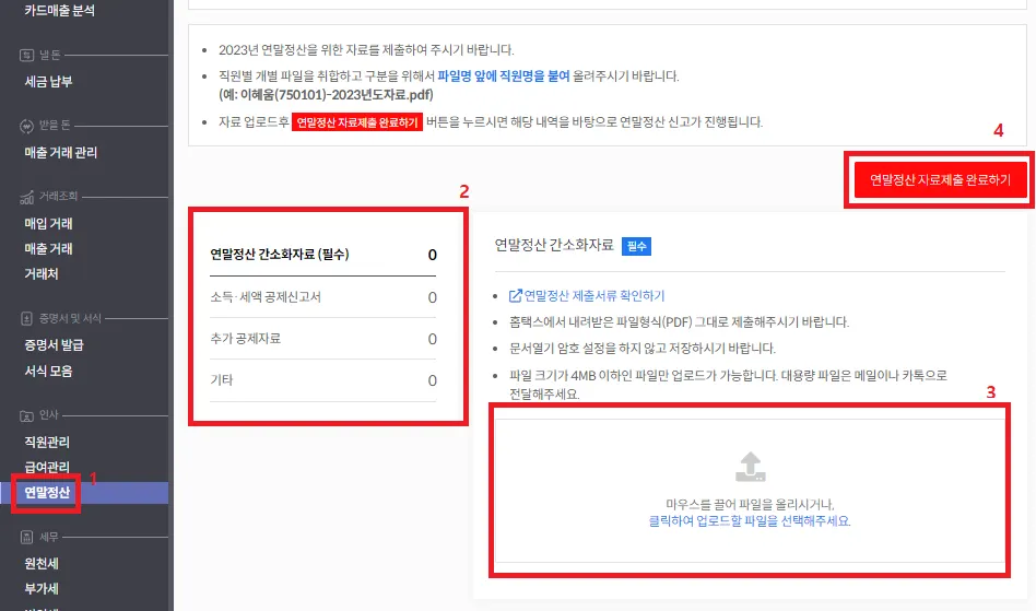 (인사담당자 → 혜움) 연말정산 자료 제출 (시스템 업로드)