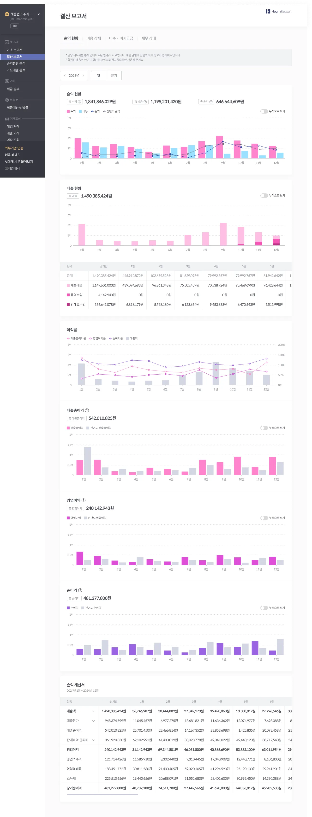 손익 및 비용 현황을 보다 상세하게 조회/분석하여, 사업에 실질적인 도움이 되도록 개편하였습니다.
