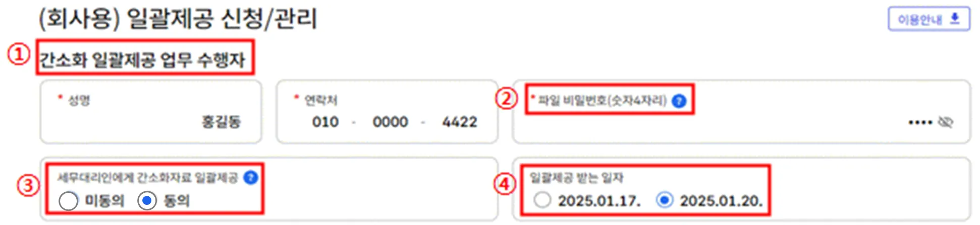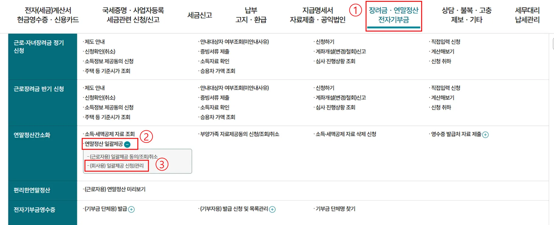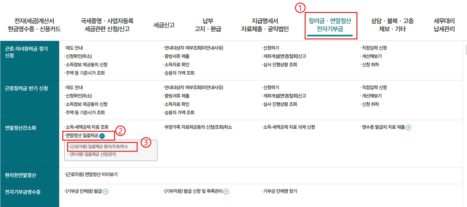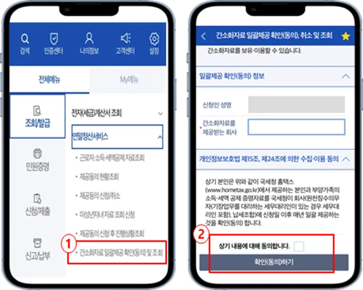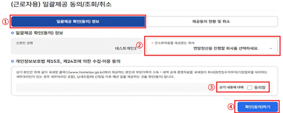 ③ 세무대리인 간소화자료 일괄제공 “동의” 선택