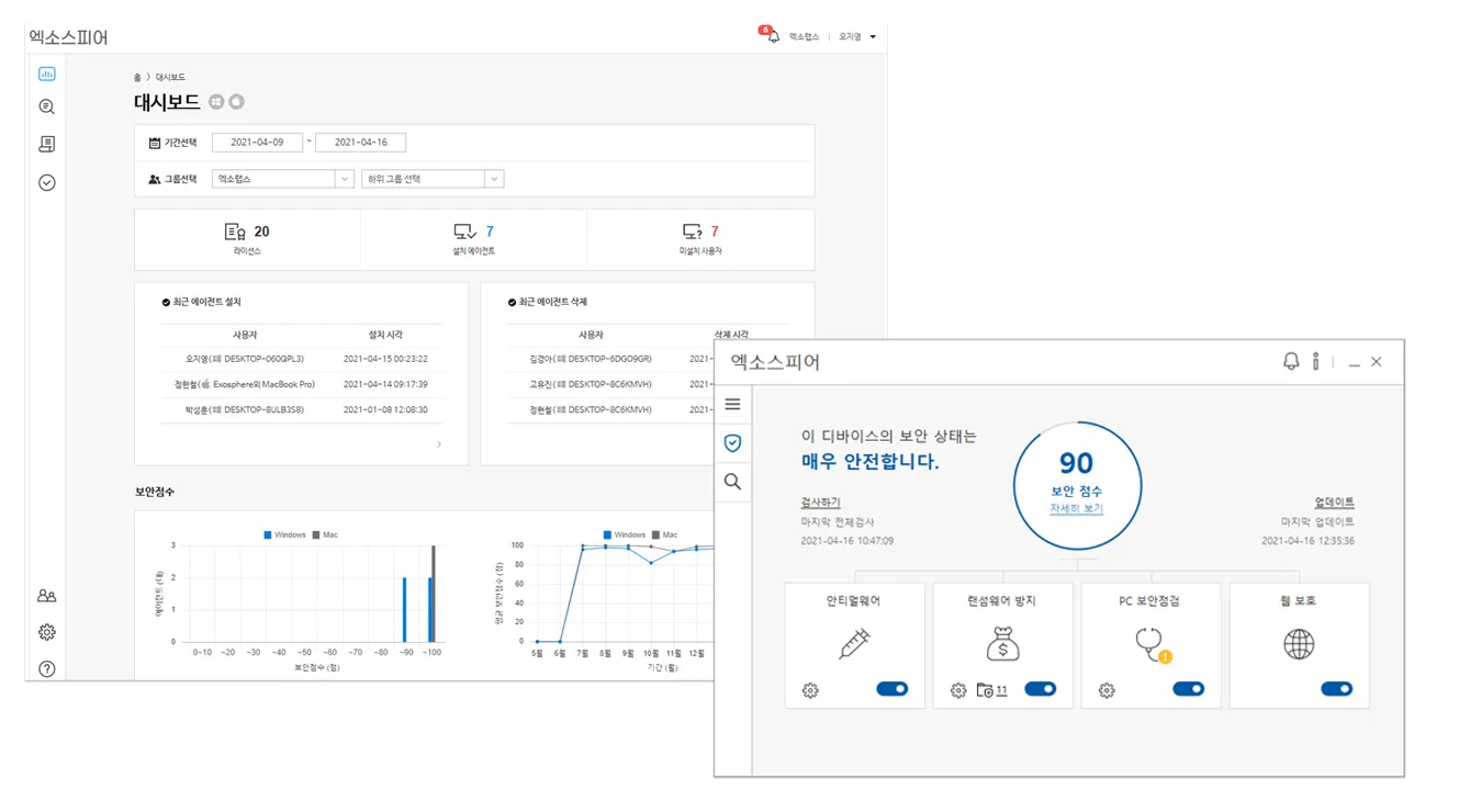 엑소스피어는 기업의 안전한 비즈니스 환경을 위한 올인원PC보안서비스를 제공합니다.