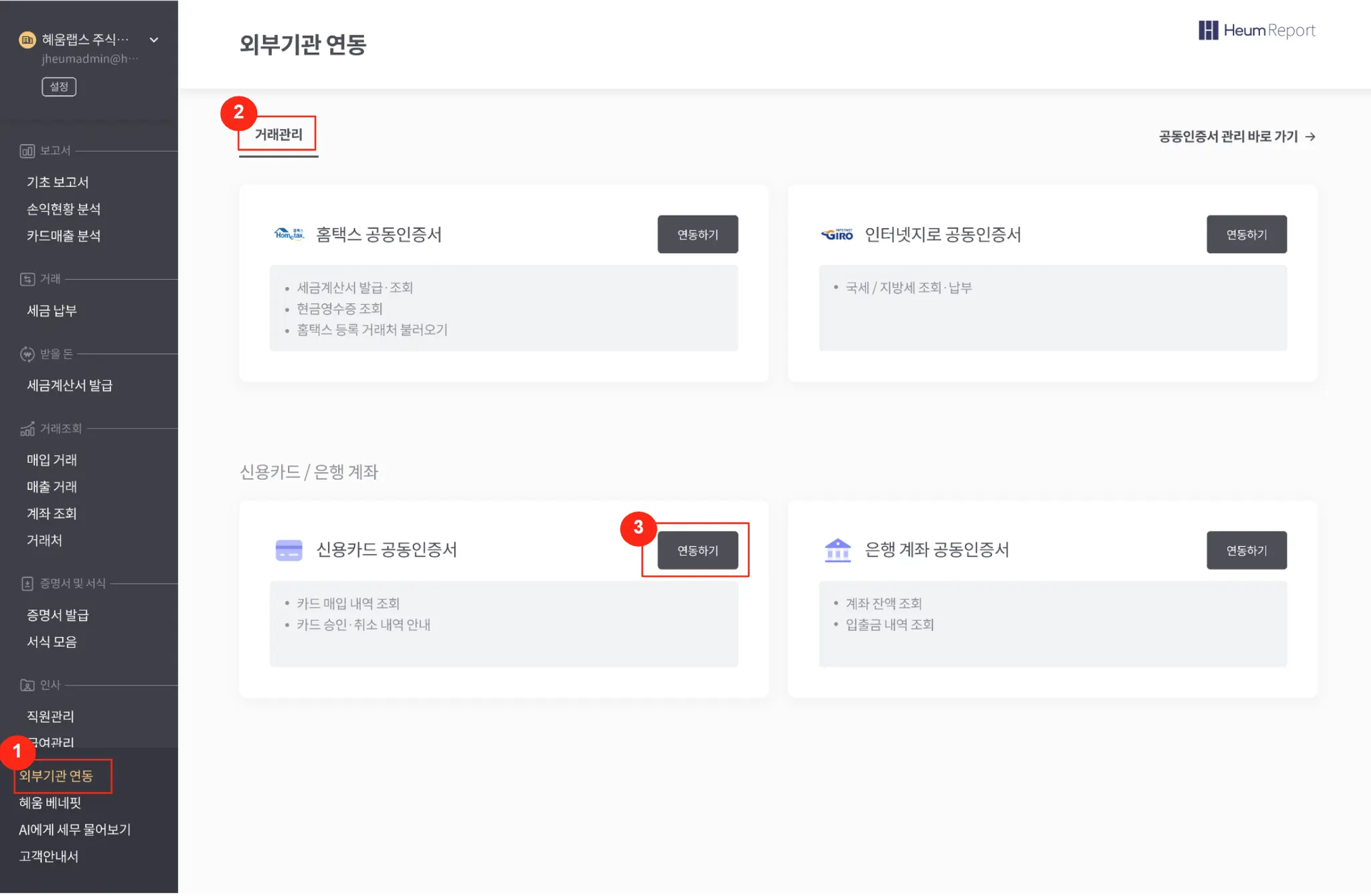 세무 기장 고객의 경우에는, 인증서 기반으로 연동한 카드 정보가 세무 기장 자료로 활용될 예정입니다.