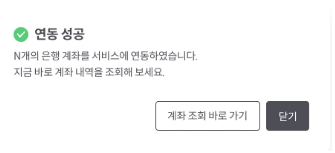 연동을 성공하면, 바로 [계좌 조회]로 이동하여 거래 내역을 조회할 수 있습니다.