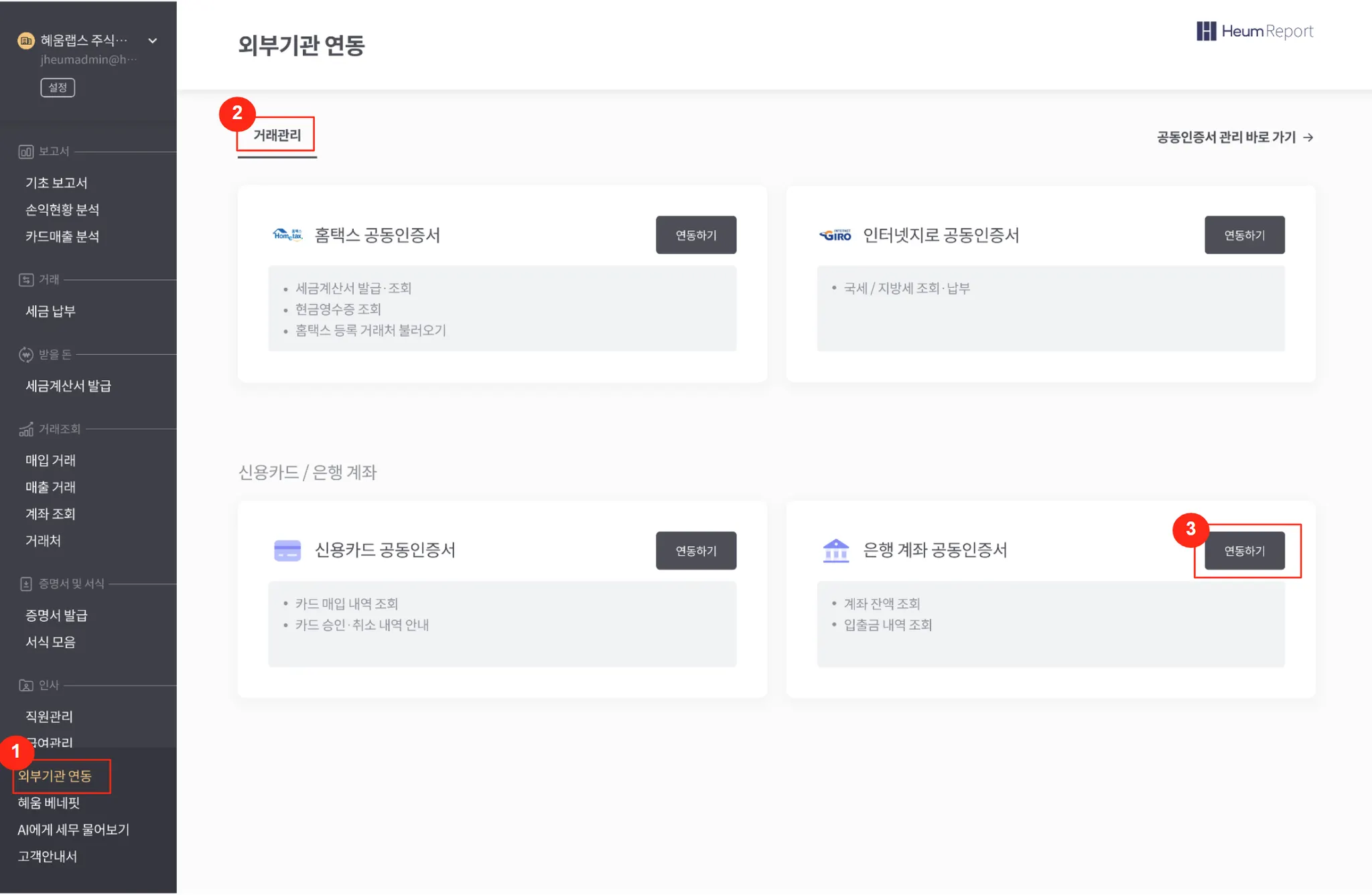 세무 기장 고객의 경우에는, 인증서 기반으로 연동한 정보가 세무 기장 자료로 활용될 예정입니다.