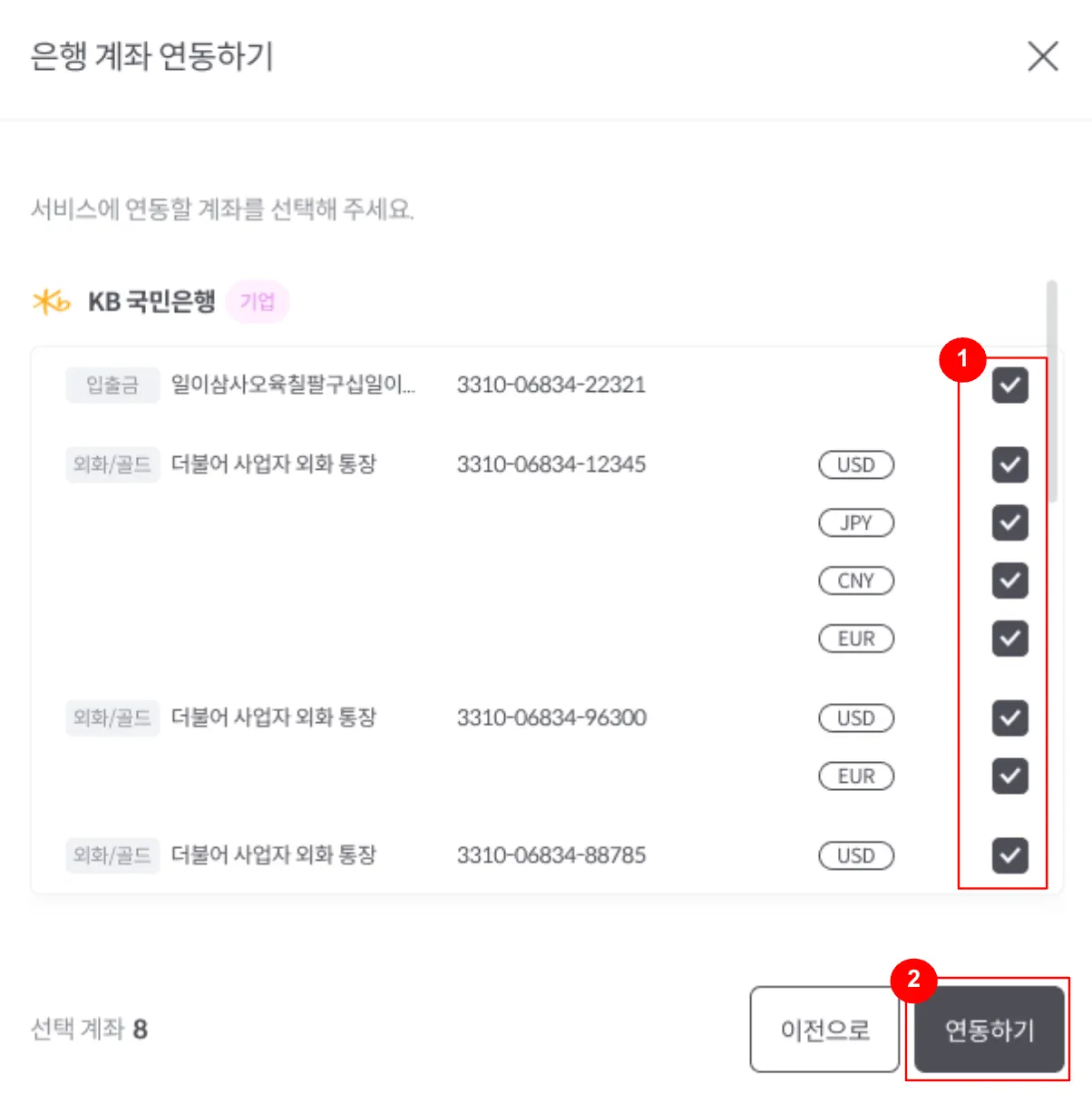 연동하고자 하는 계좌를 선택하고, [연동하기] 버튼을 선택 해주세요.