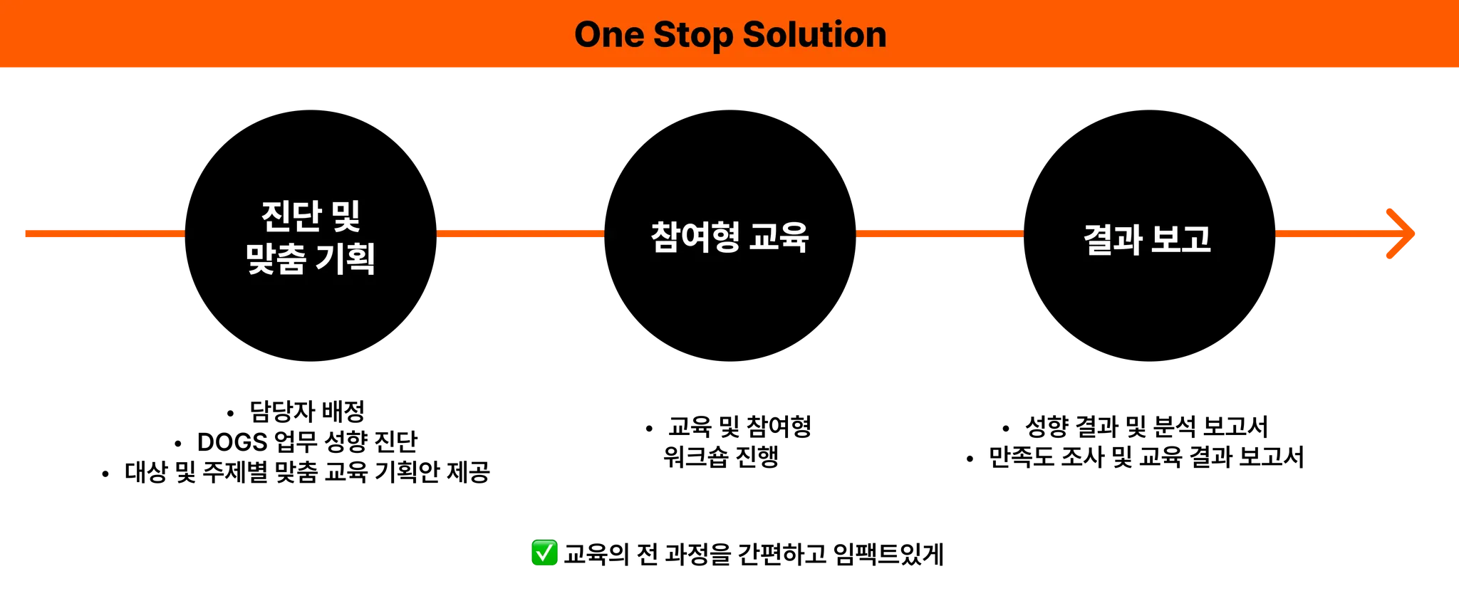 교육 과정 기획부터 최종 보고까지 모든 과정을 원스톱 솔루션으로 제공합니다.