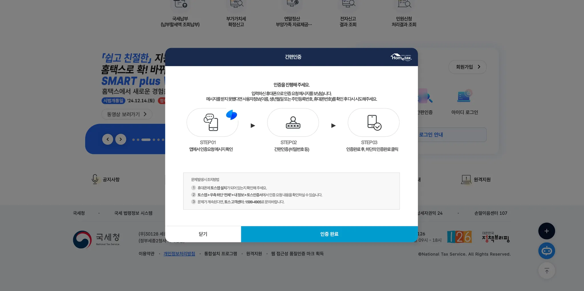휴대폰에서 인증 절차를 마무리하신 다음, 간편인증에서 인증 완료를 선택합니다.