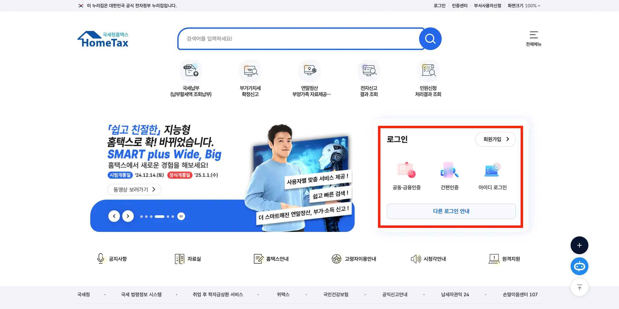 추천하는 메뉴 가운데, 연말정산간소화 메뉴를 선택합니다.