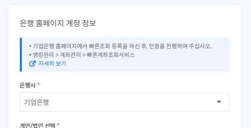 *각 은행별로 연동에 필요한 정보는 다를 수 있습니다.