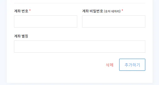 계좌 정보를 입력하고, 추가하기 버튼을 클릭하세요.