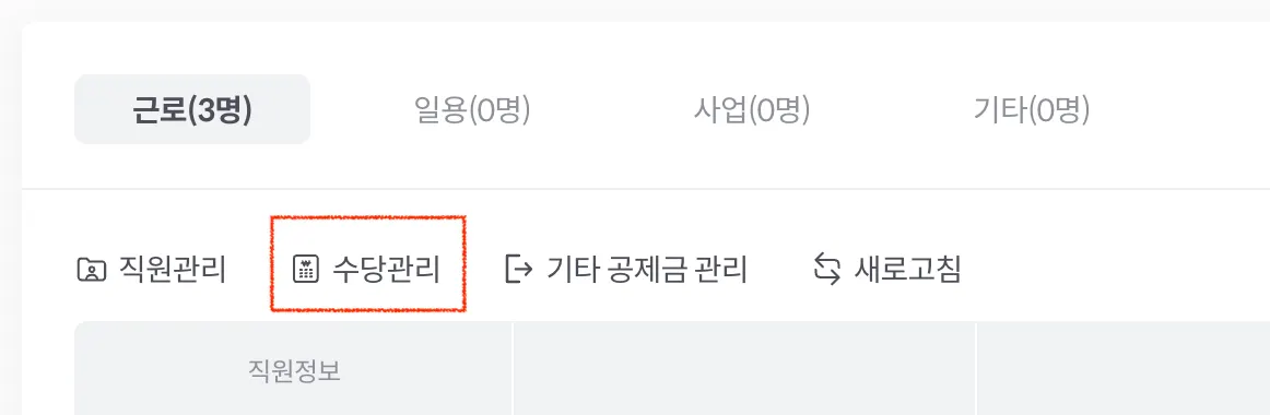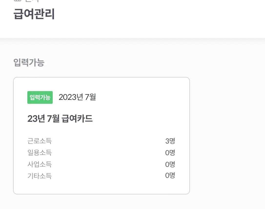 추가 급여카드에서는 근로소득 입력이 불가합니다. 매월 자동으로 생성되는 기본 급여카드에서만 입력이 가능합니다.